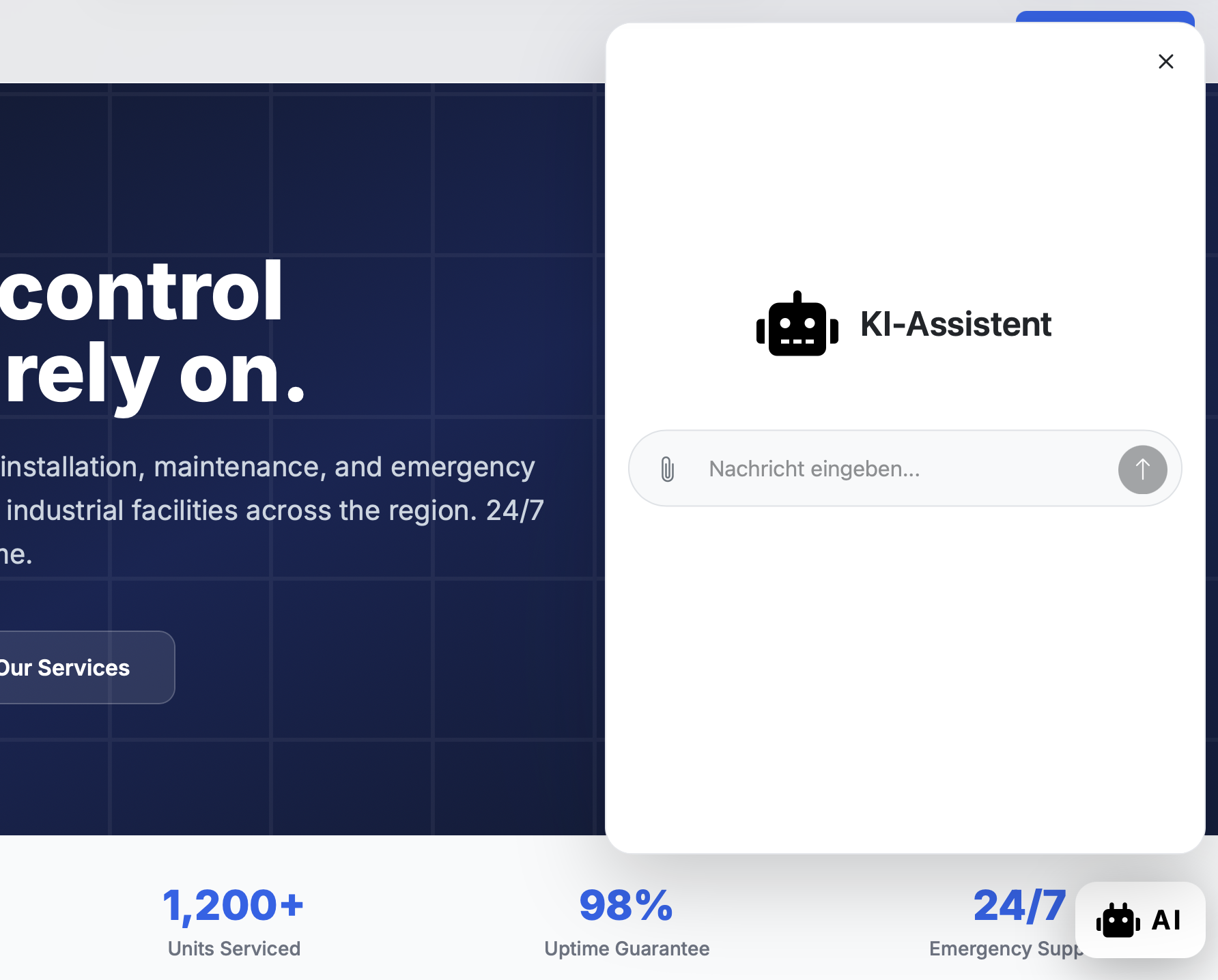 Contact UsYour web agency pastes a single script tag – and your AI chatbot is live on your website. No backend, no complex setup, no weeks of waiting.
