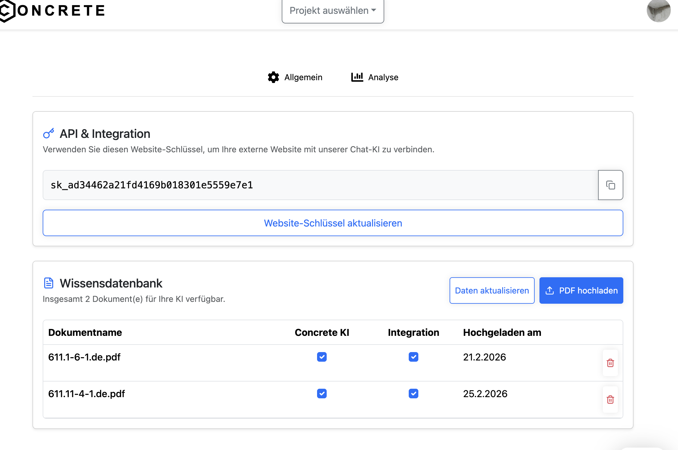 Access Project Space & AI Chatbot via Concrete